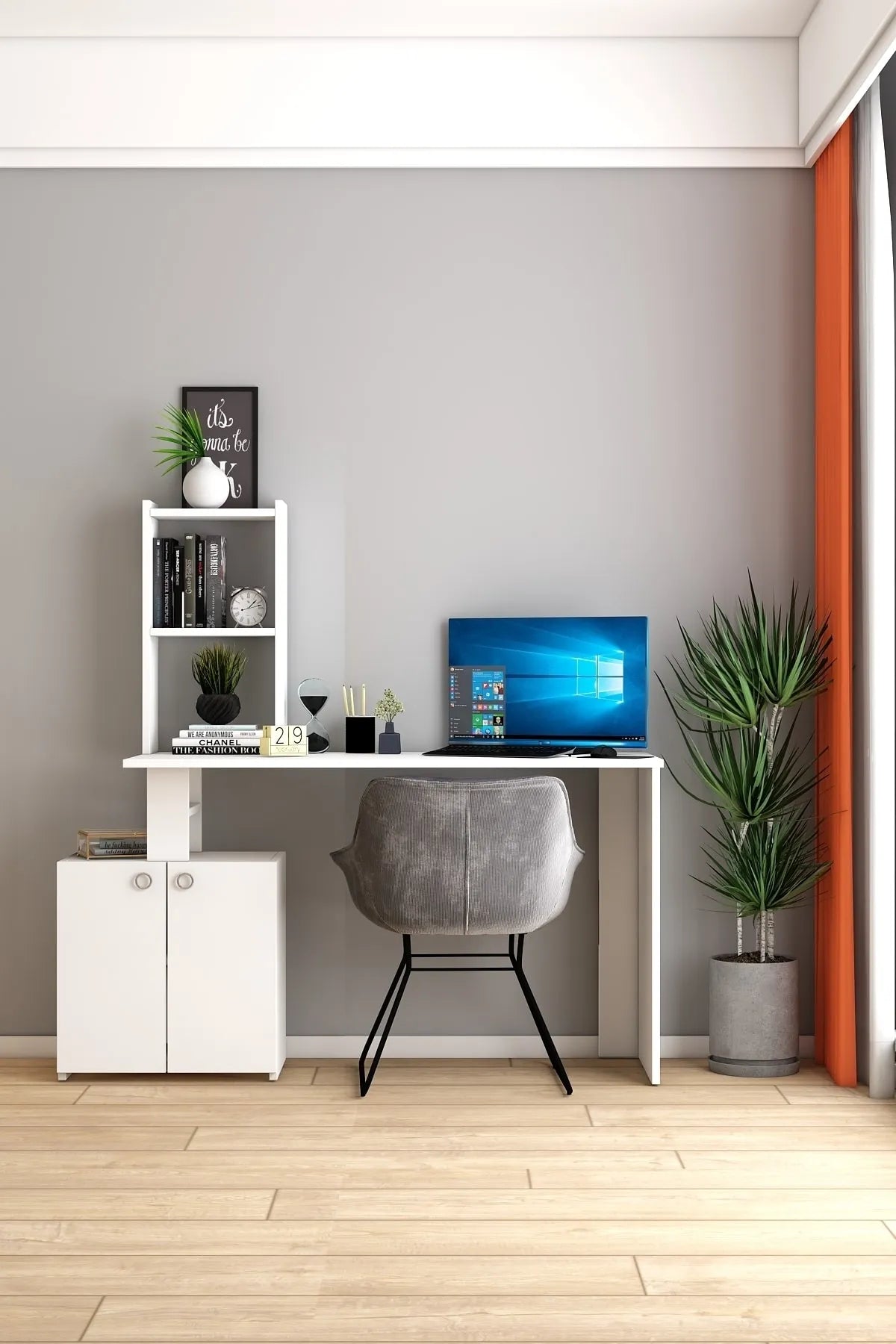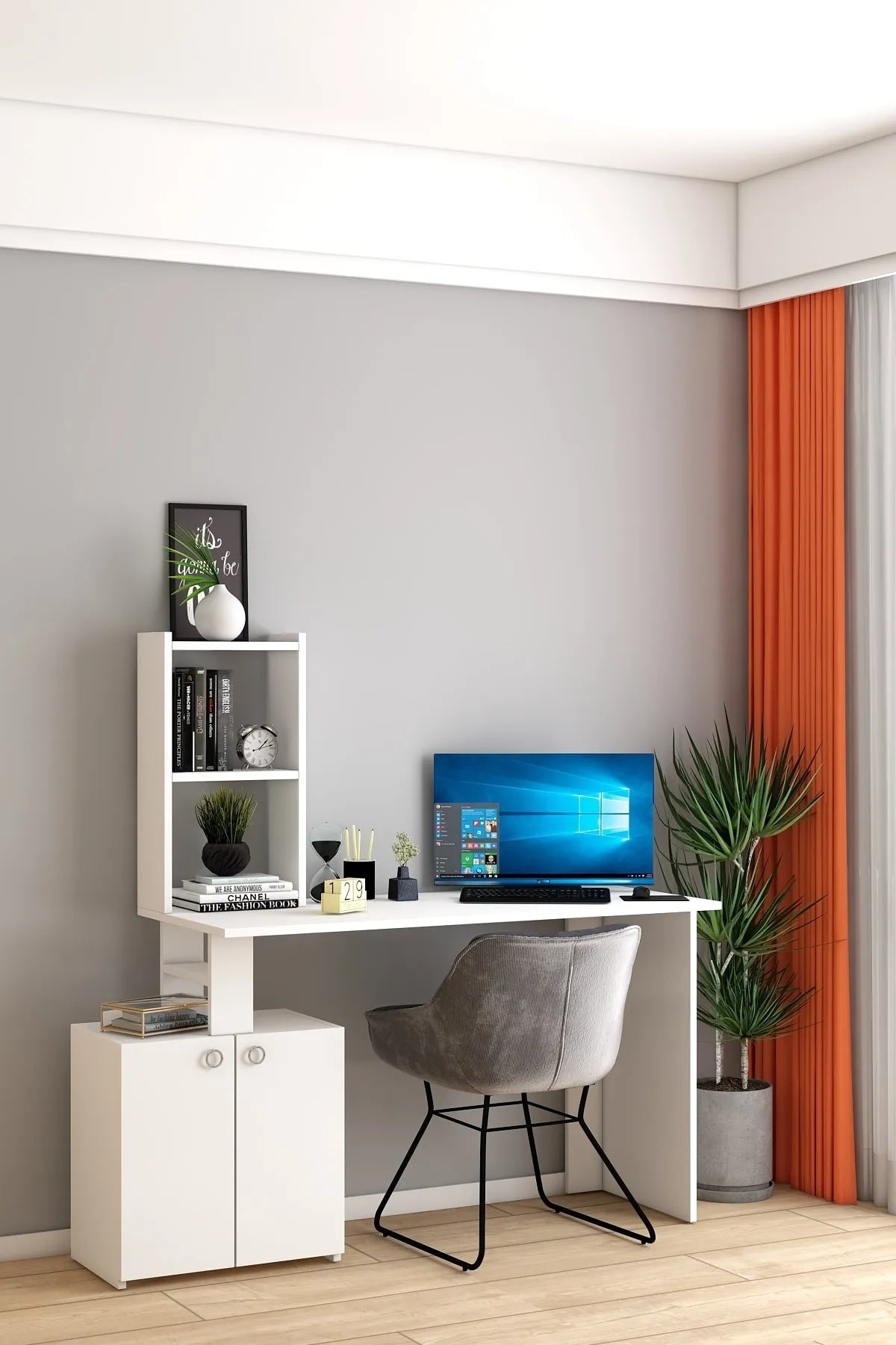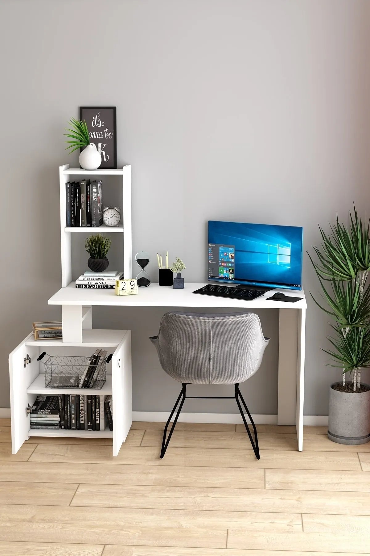 - Dekoronya Modern Dolaplı ve Kitaplıklı Çalışma Masası Beyaz