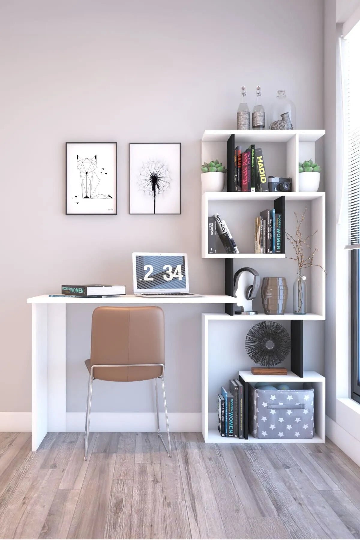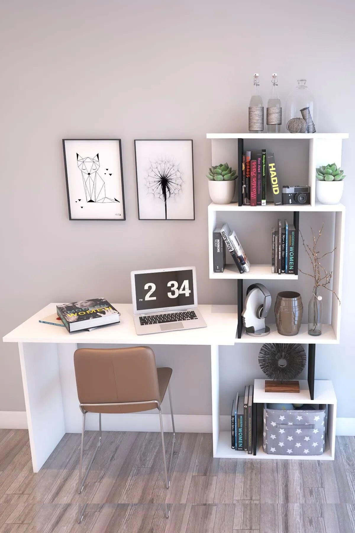 Dekoronya Merkür Raflı Çalışma Masası Beyaz