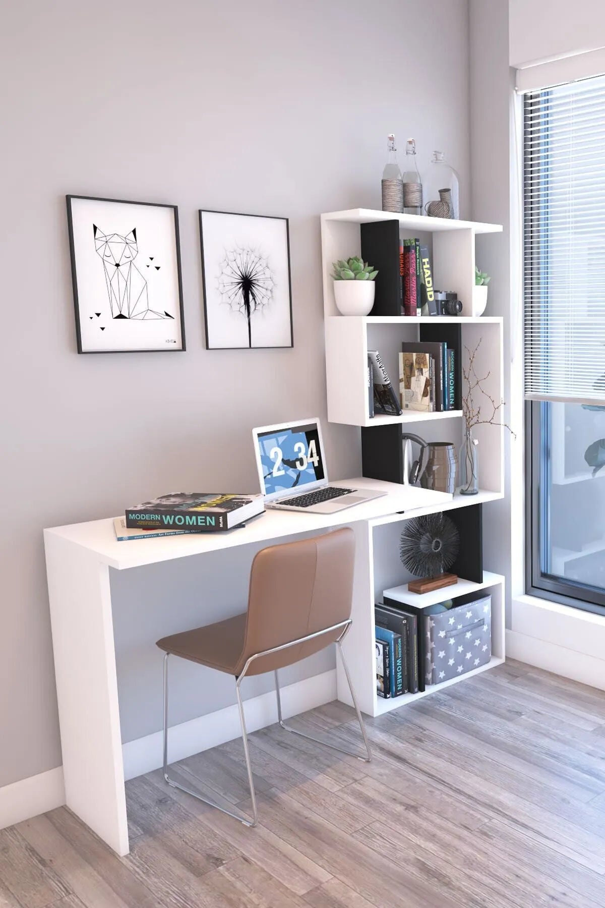 - Dekoronya Marla Kitaplıklı Fonksiyonel Çalışma Masası Siyah