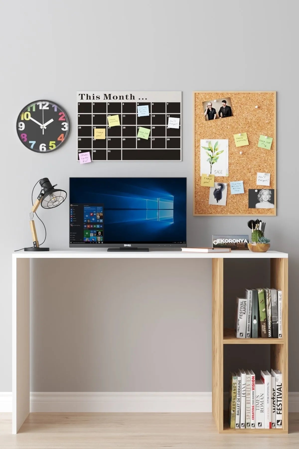 Dekoronya Merkür Raflı Çalışma Masası Beyaz