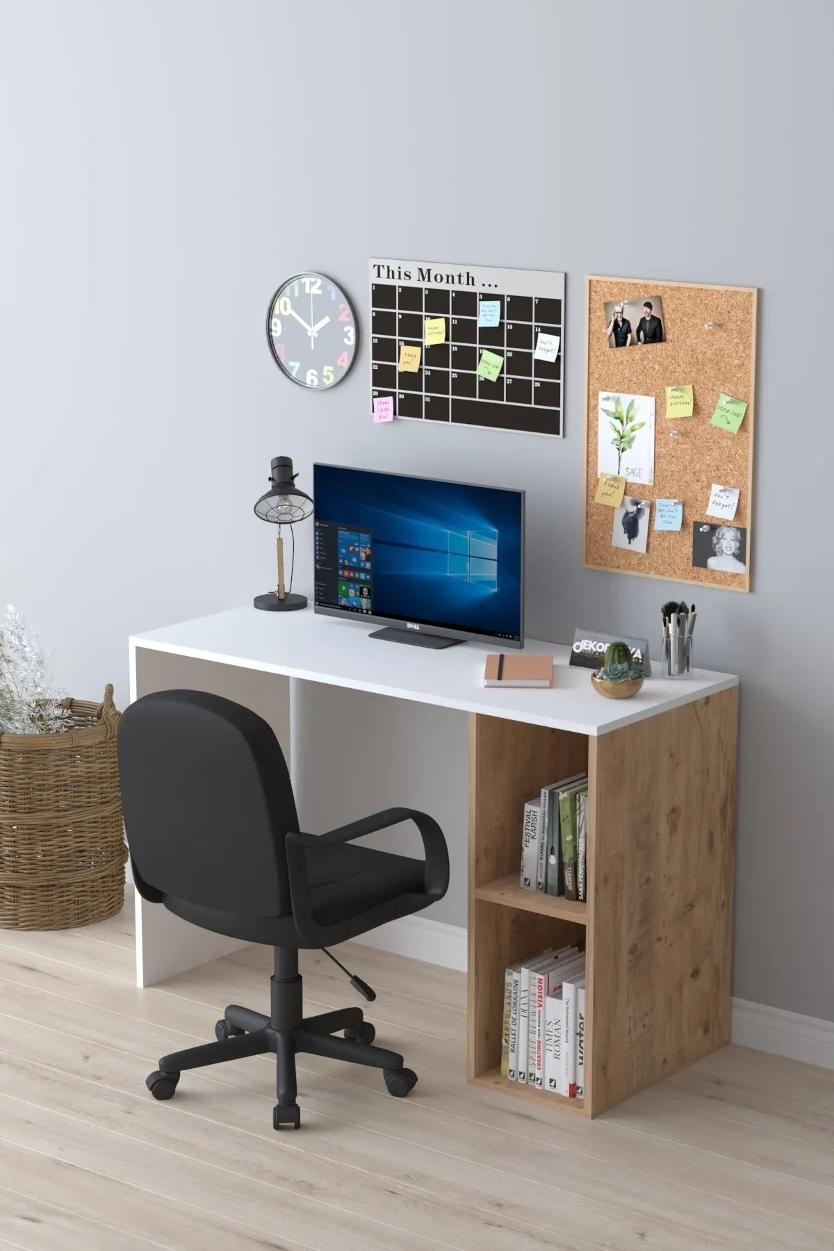 - Dekoronya Merkür Raflı Çalışma Masası Meşe
