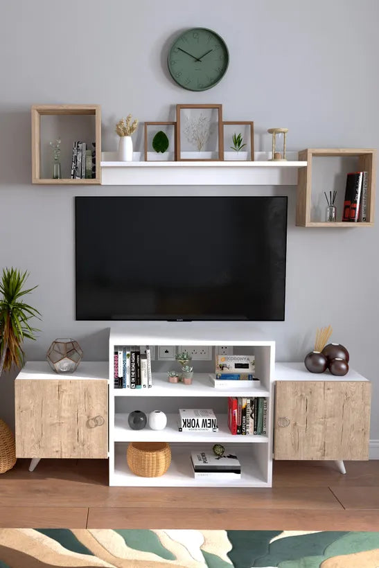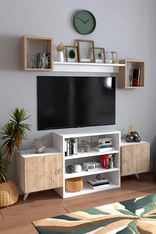- Dekoronya Prizma Kapaklı Ve Raflı Tv Ünitesi Meşe