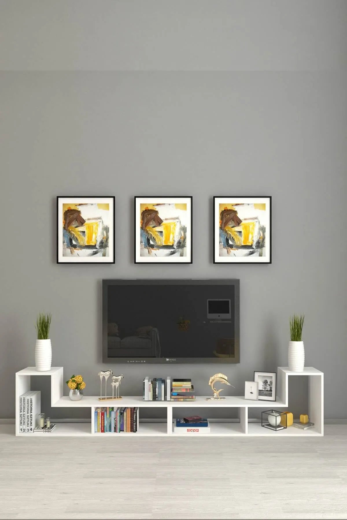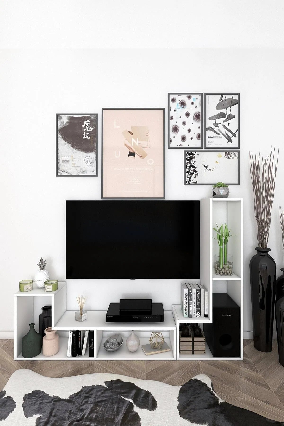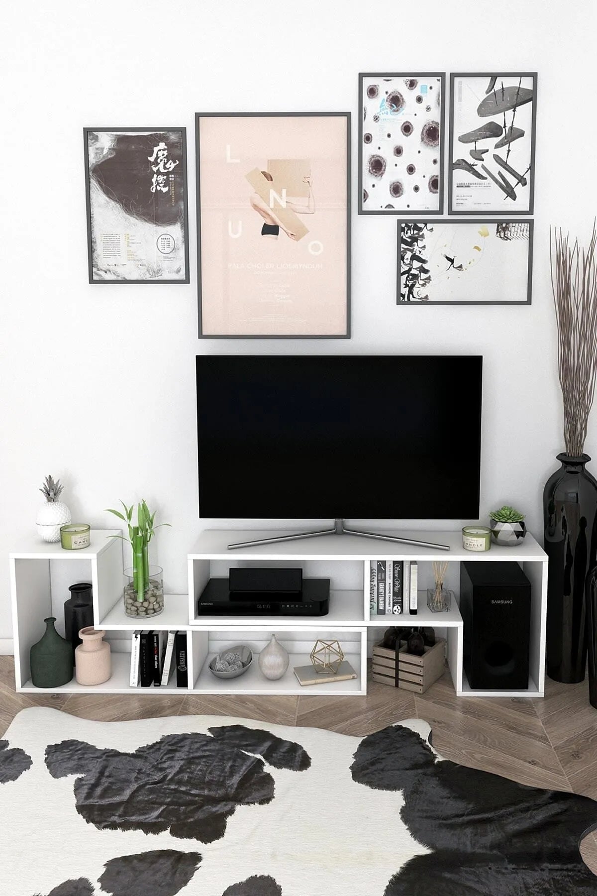 - Dekoronya Tetris Çok Amaçlı Fonksiyonel Beyaz Tv Sehpası