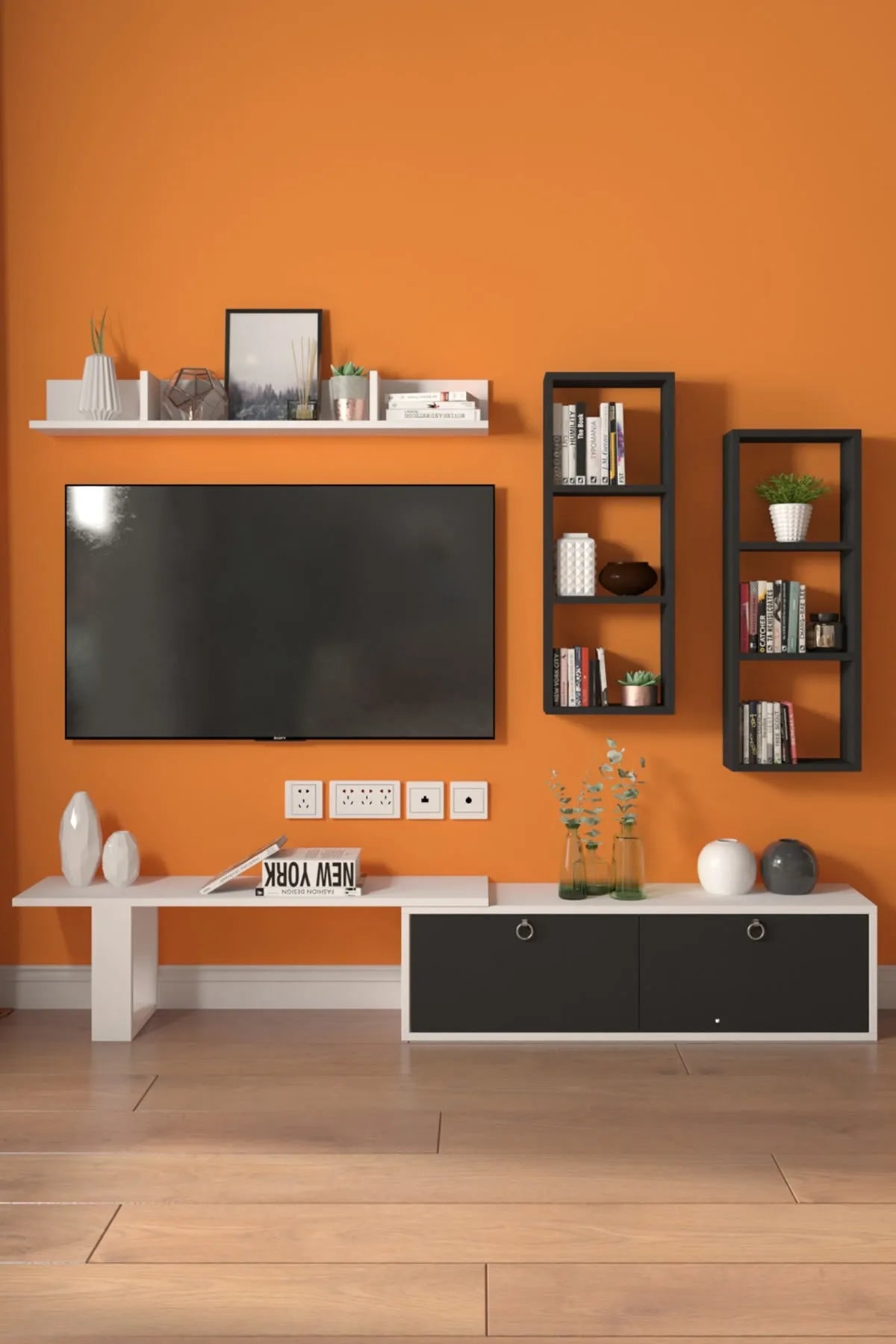 - Dekoronya Zera Raf Kitaplıklı Ve Dolap Kapaklı Tv Ünitesi Siyah