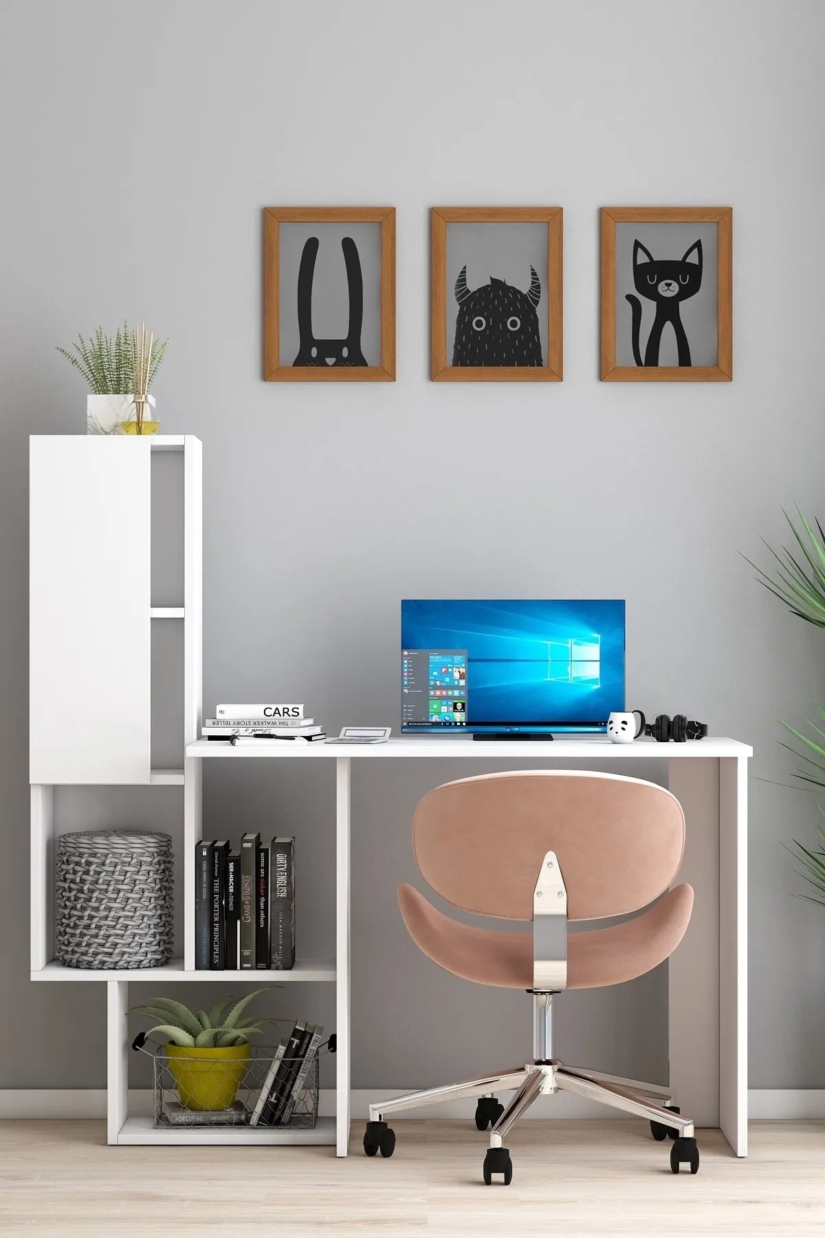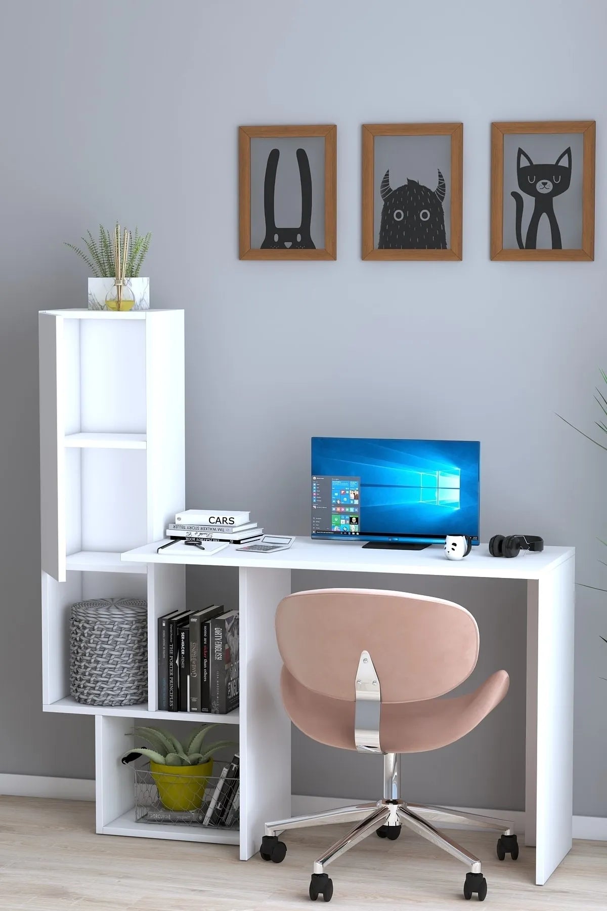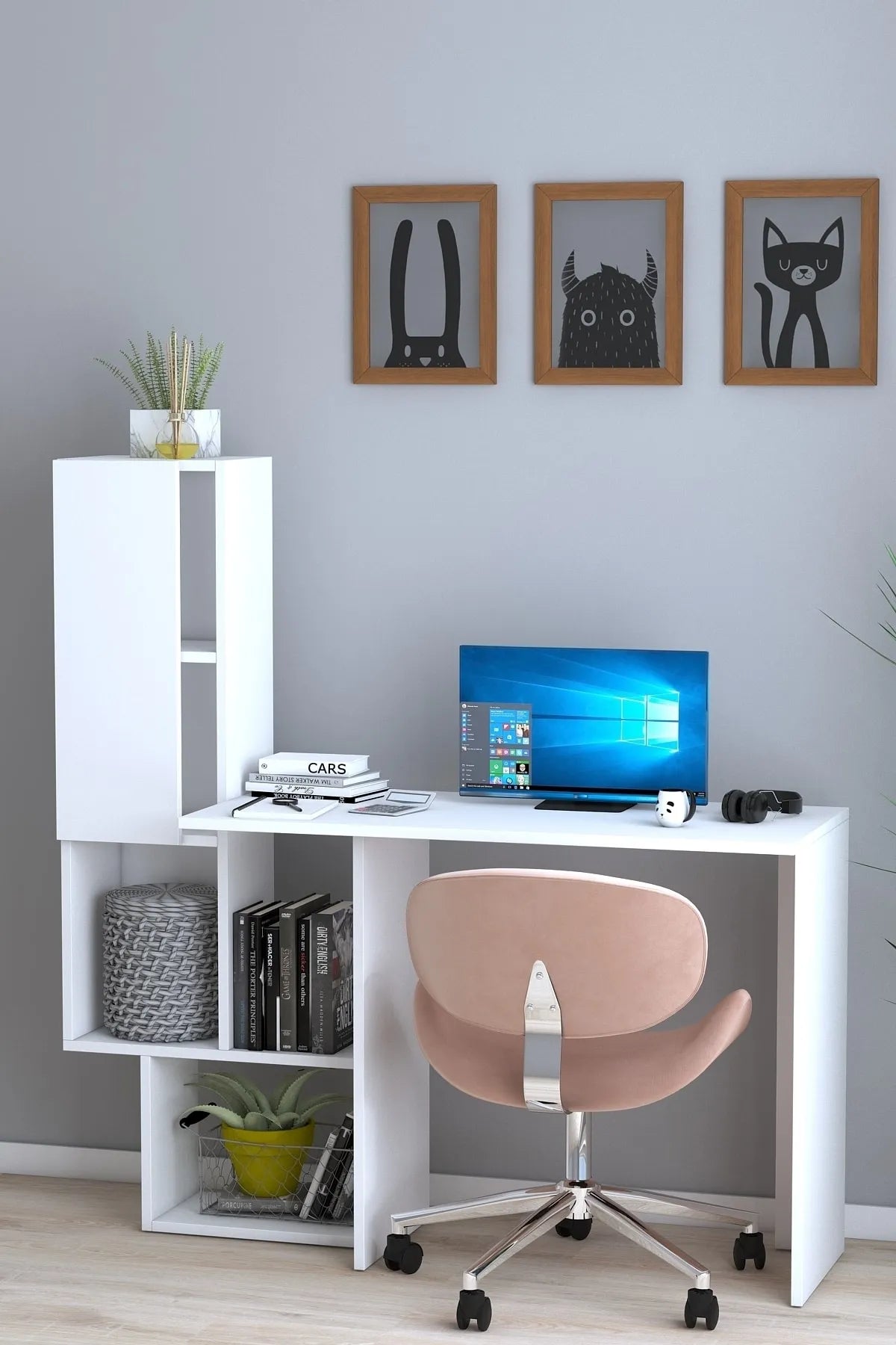 Dekoronya Ars Dolaplı ve Kapaklı Çalışma Masası Beyaz