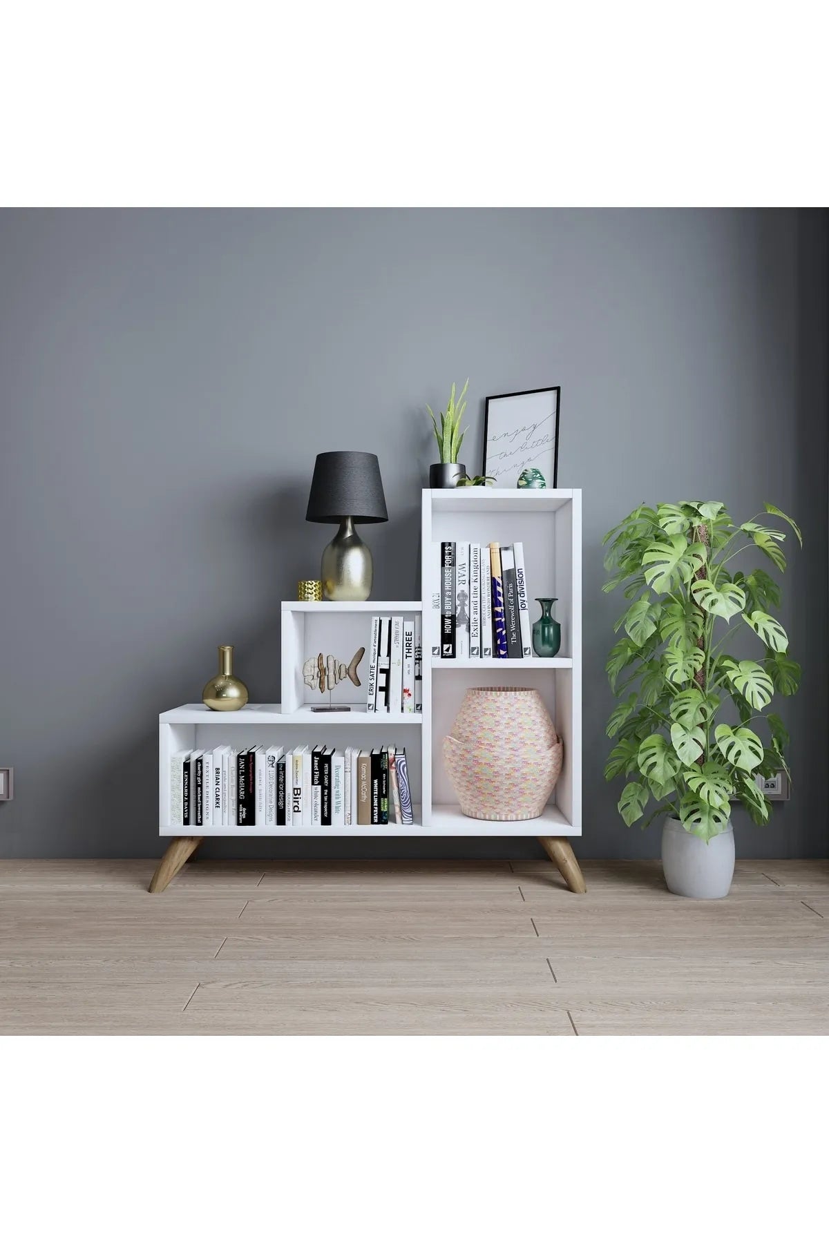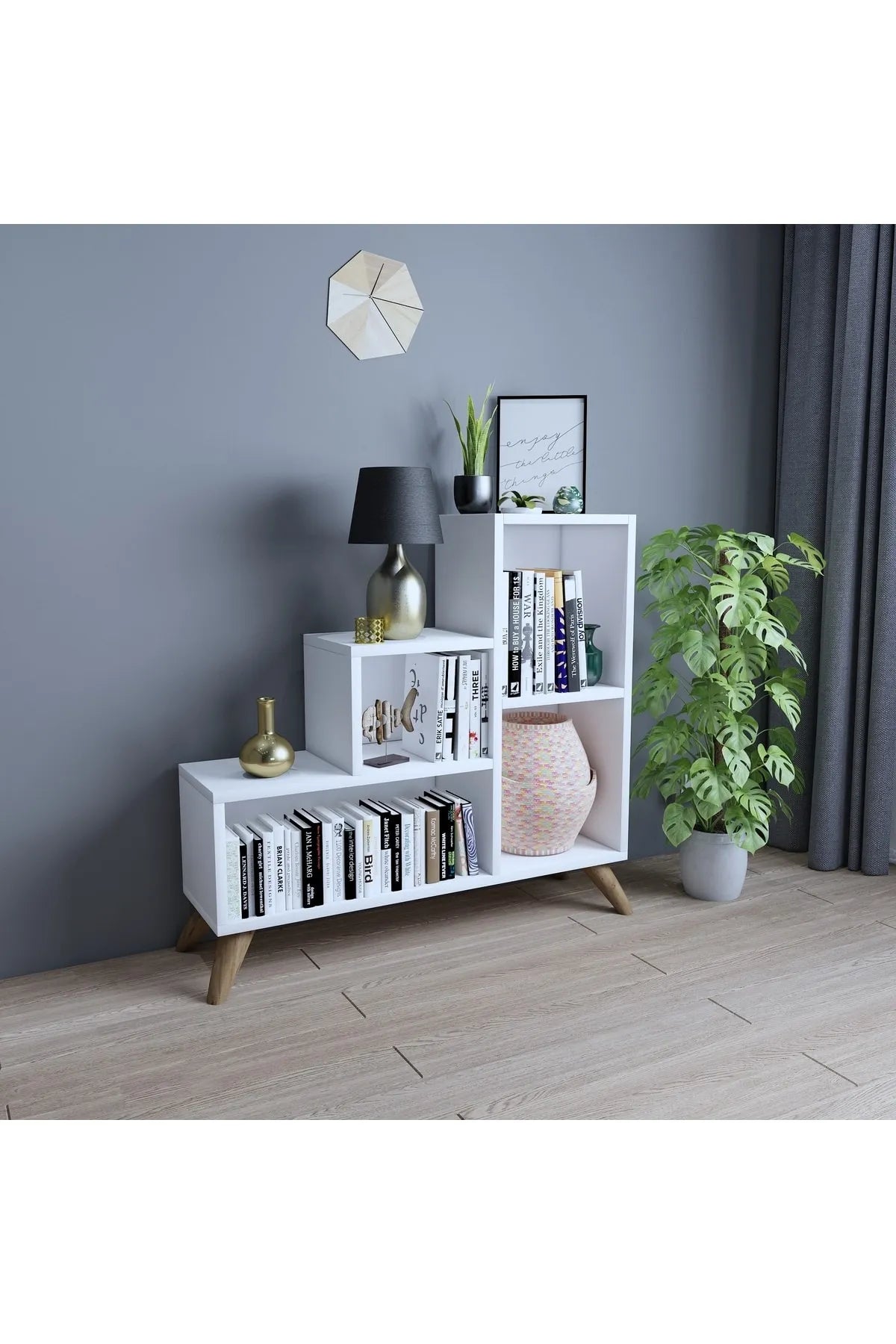 - Dekoronya Bambi Zig Zag Dekoratif Kitaplık Beyaz