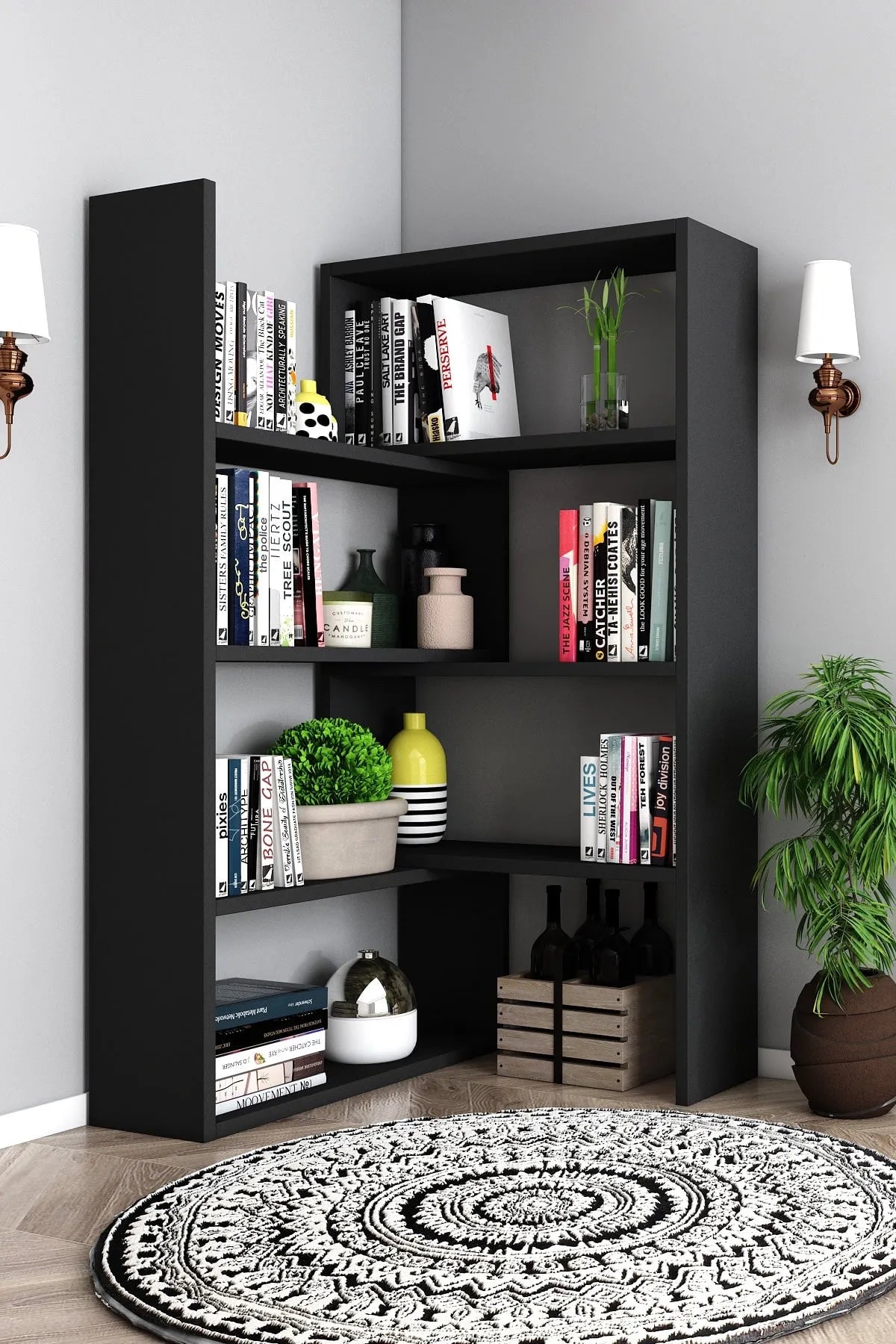 - Dekoronya Fonksiyonel Dekoratif Kitaplık Köşe Kitaplık Siyah