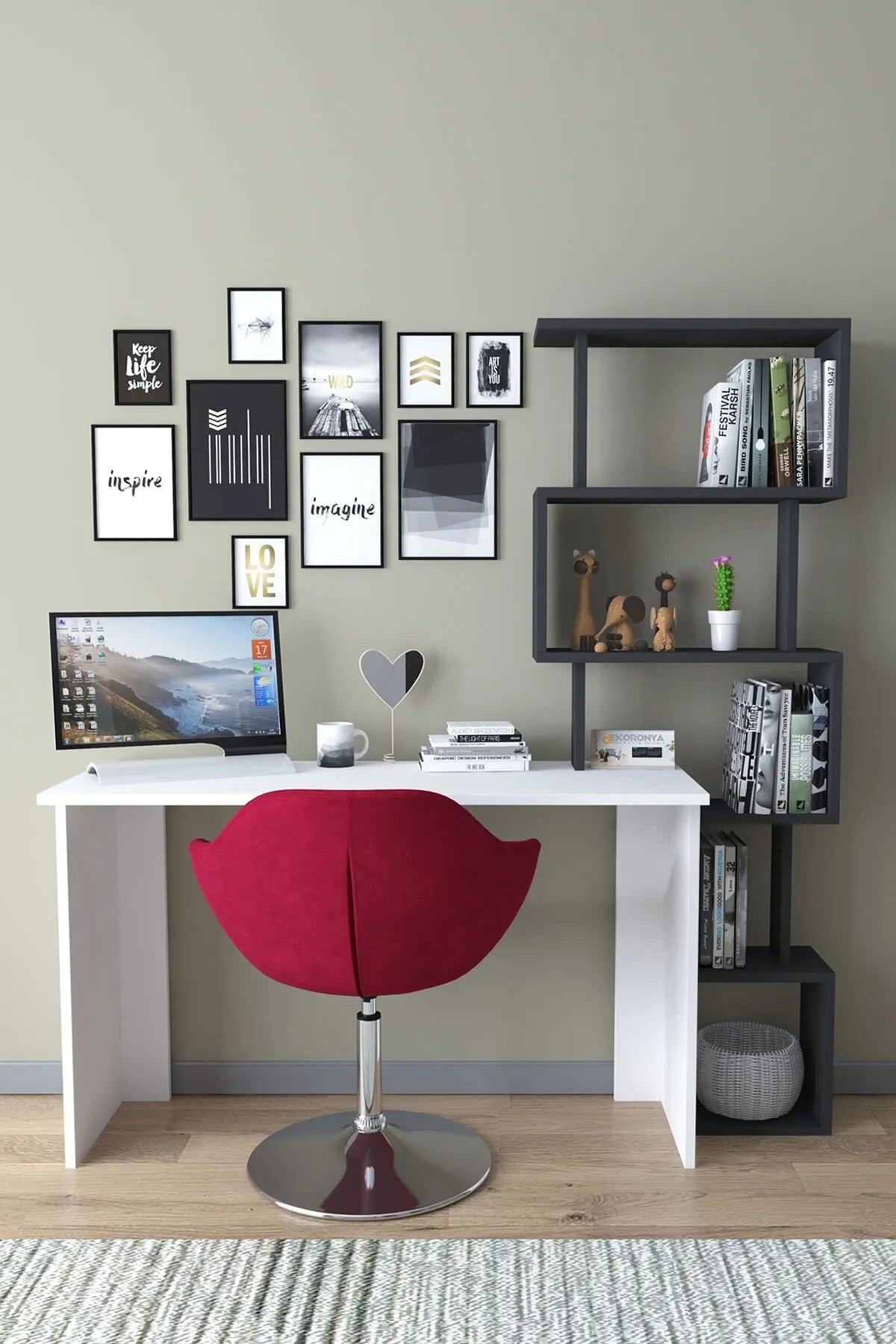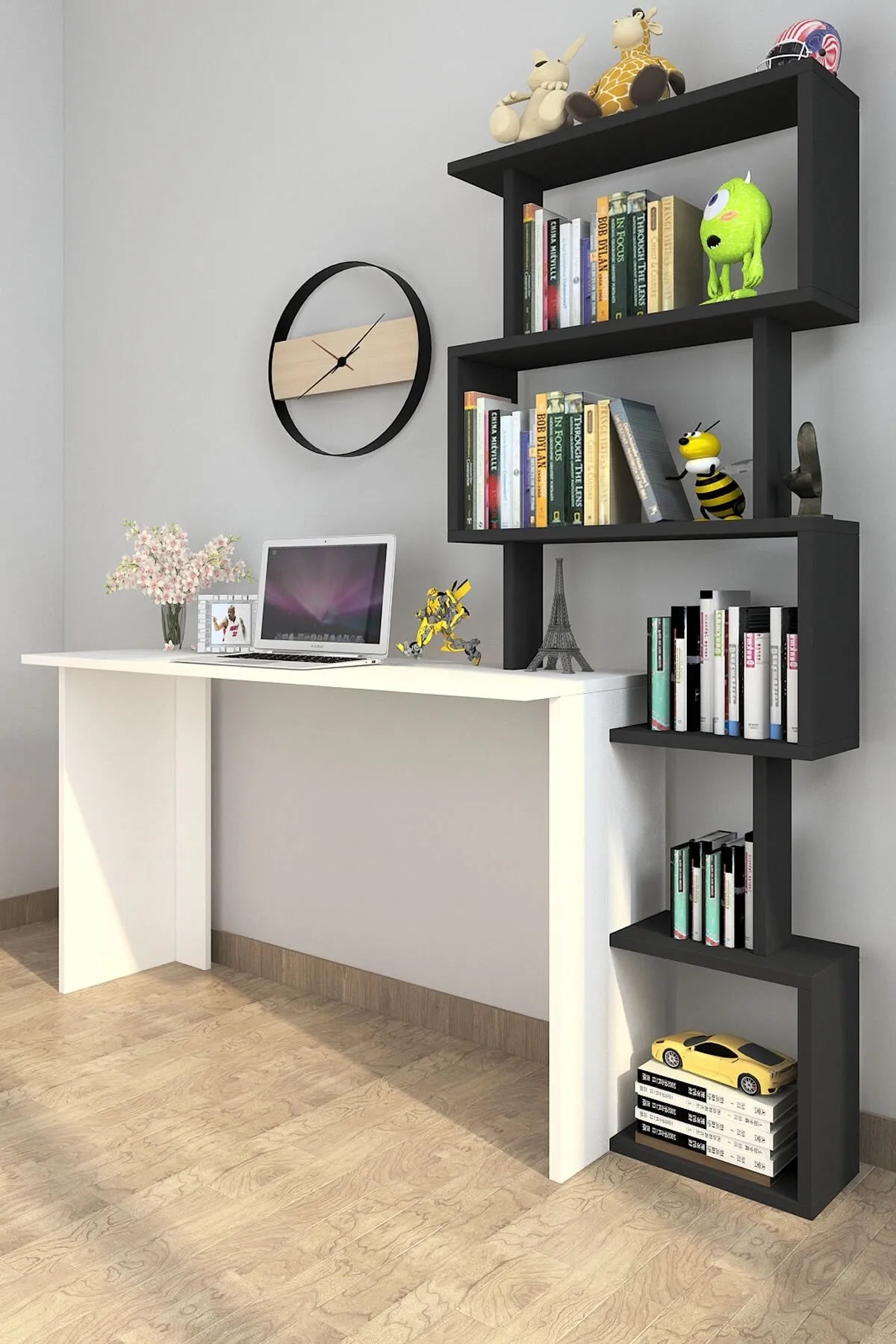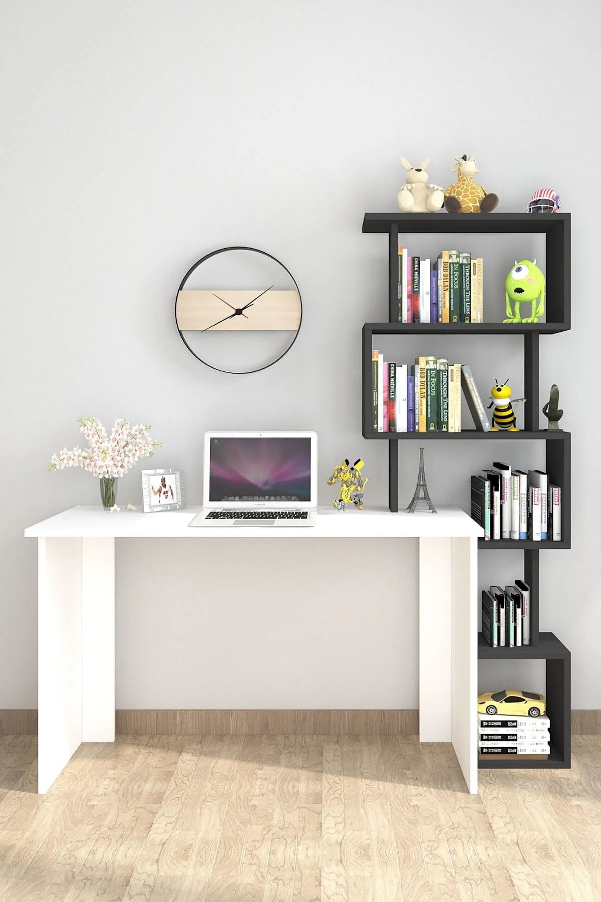 - Dekoronya Helen Zig Zag Kitaplıklı Çalışma Masası Beyaz Siyah