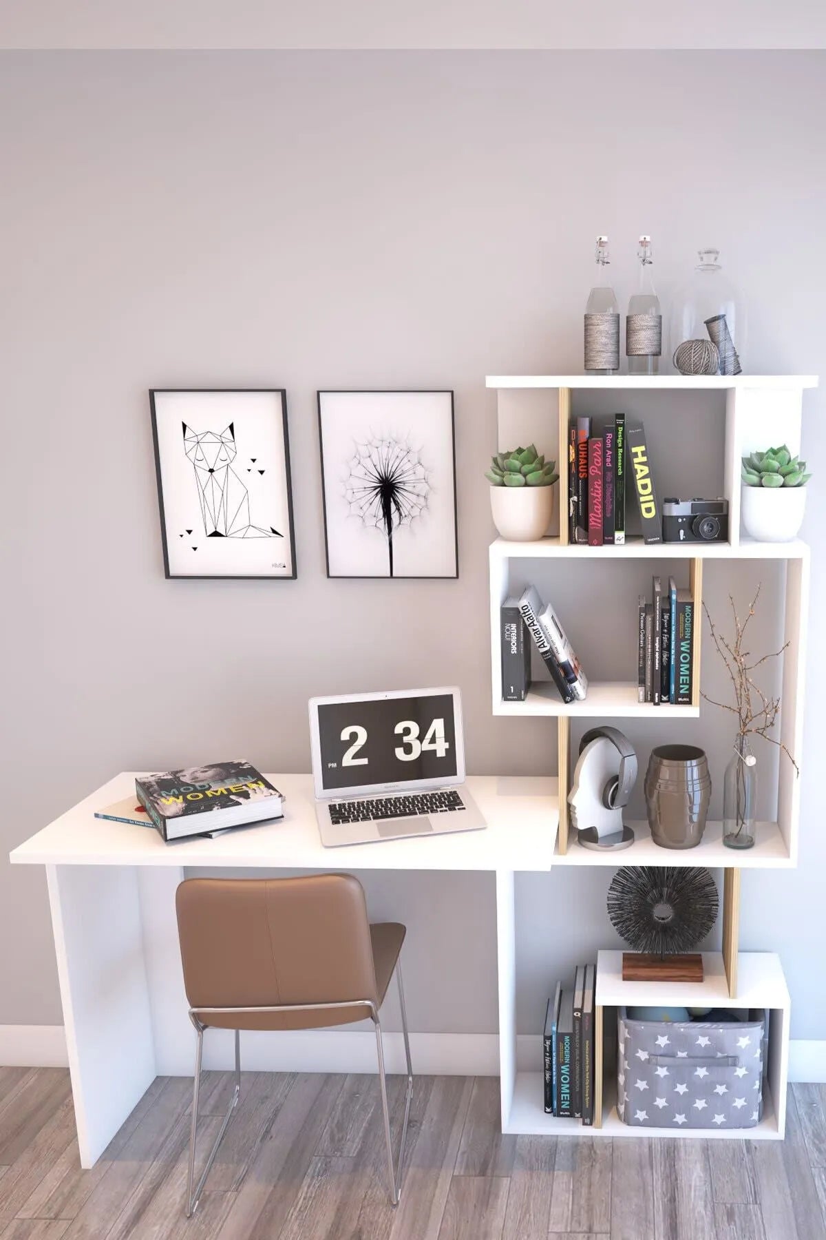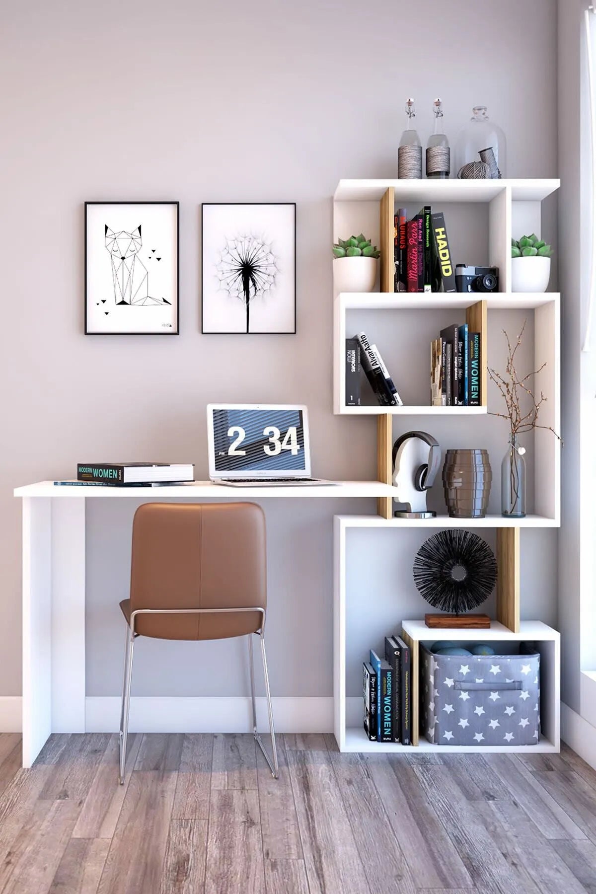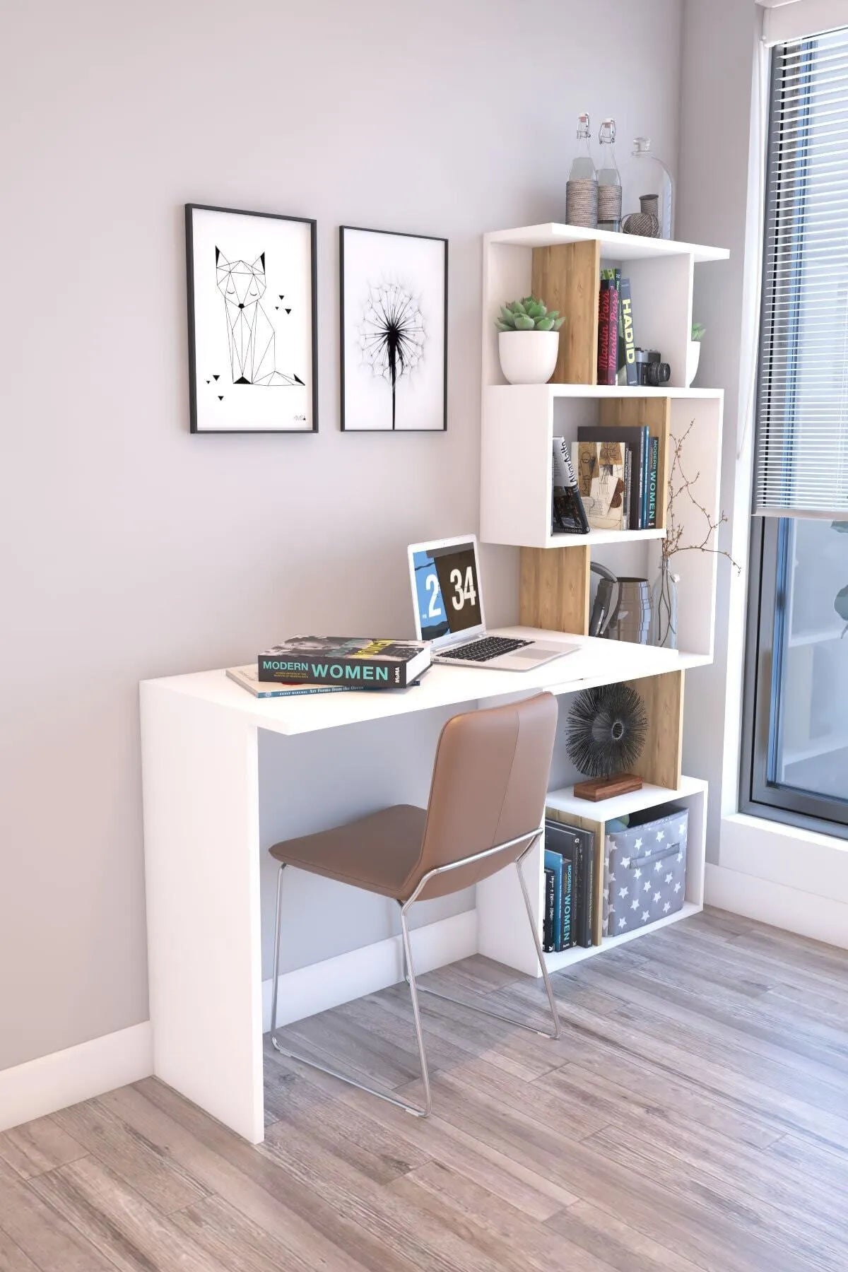 Dekoronya Marla Kitaplıklı Fonksiyonel Çalışma Masası Meşe