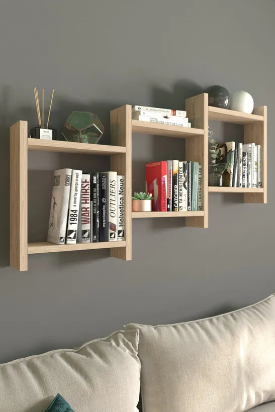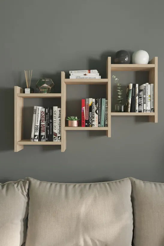 Dekoronya Melodi Dekoratif Duvar Rafı Kitaplık Meşe