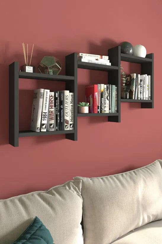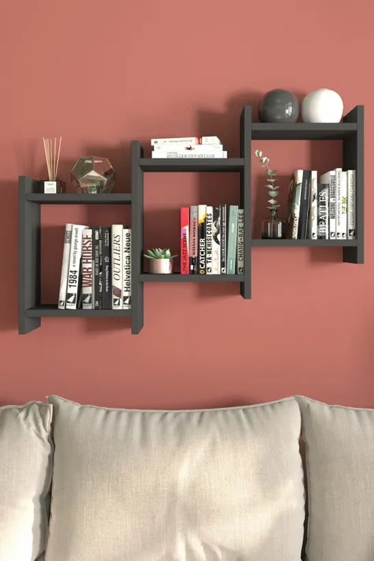 - Dekoronya Melodi Dekoratif Duvar Rafı Kitaplık Siyah