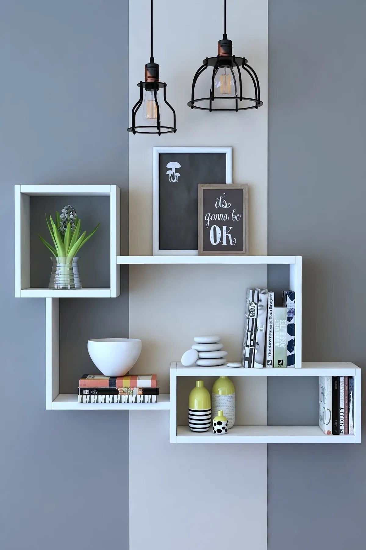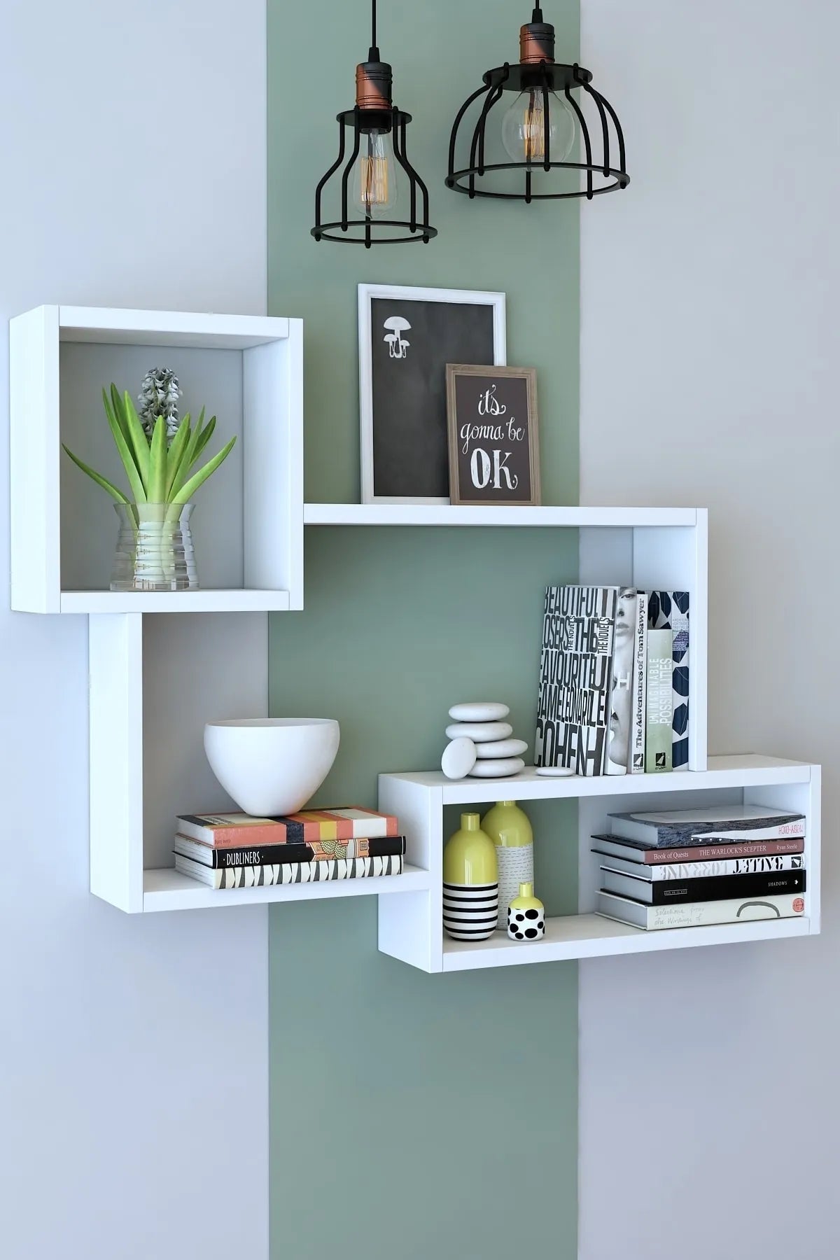Dekoronya Poli Dekoratif Duvar Rafı Kitaplık Beyaz