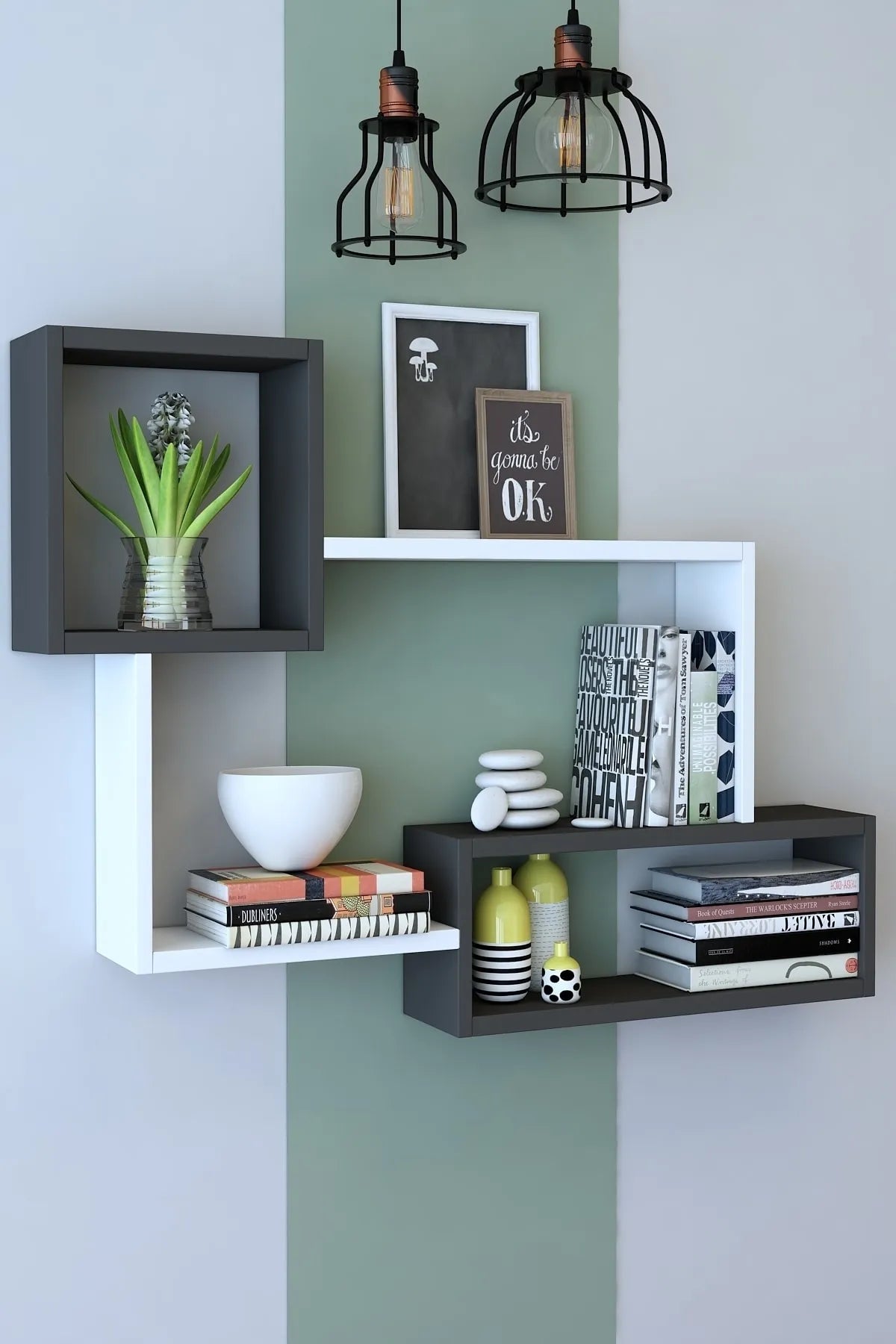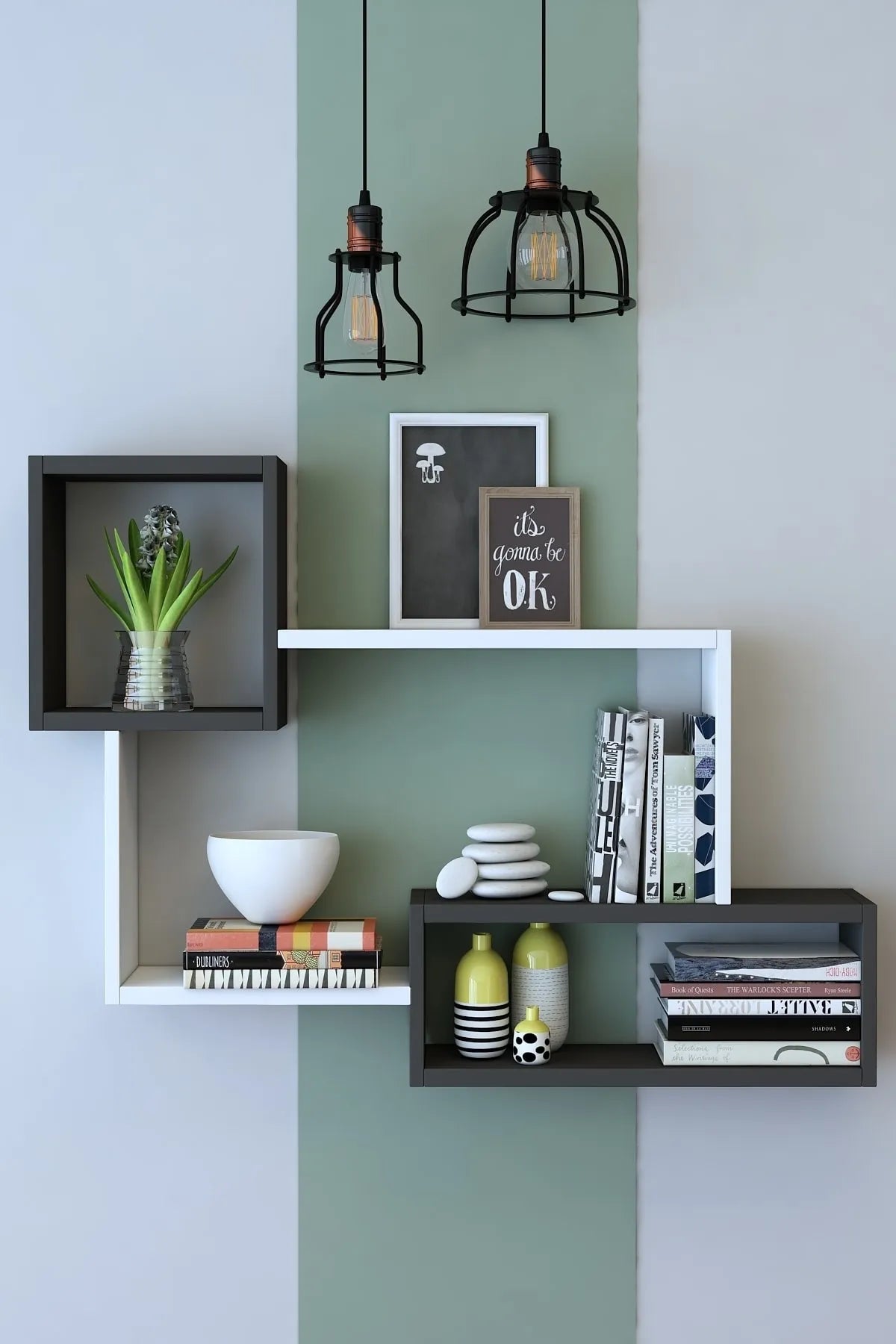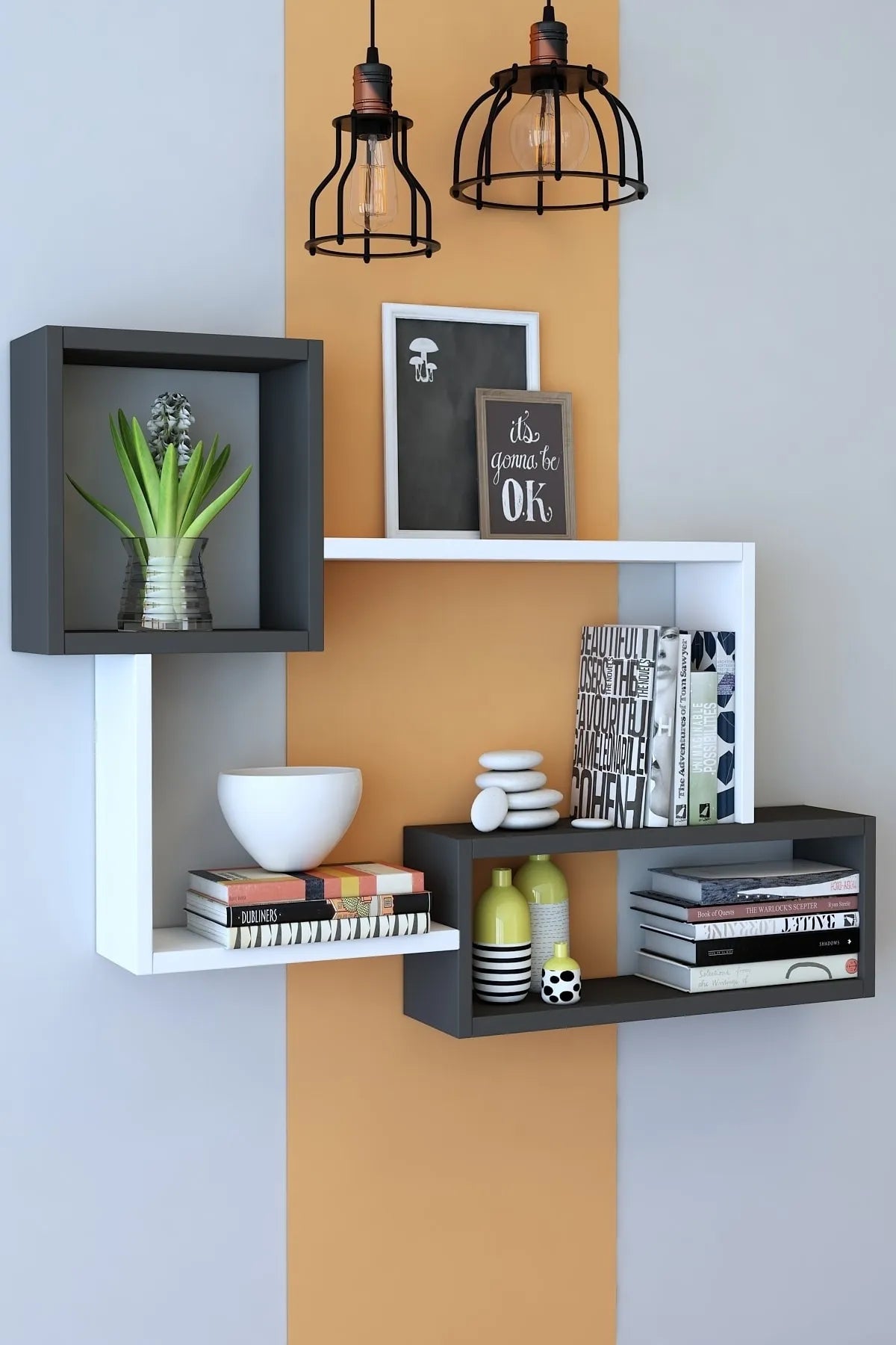 Dekoronya Poli Dekoratif Duvar Rafı Kitaplık Siyah