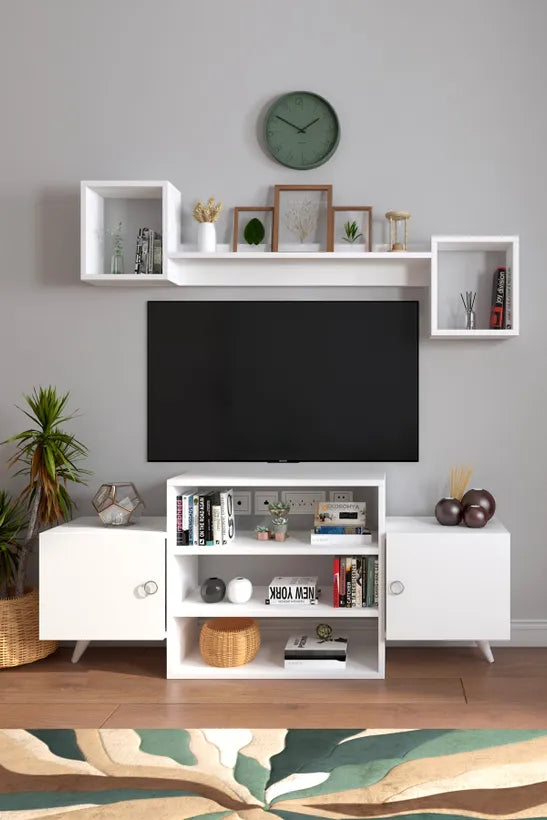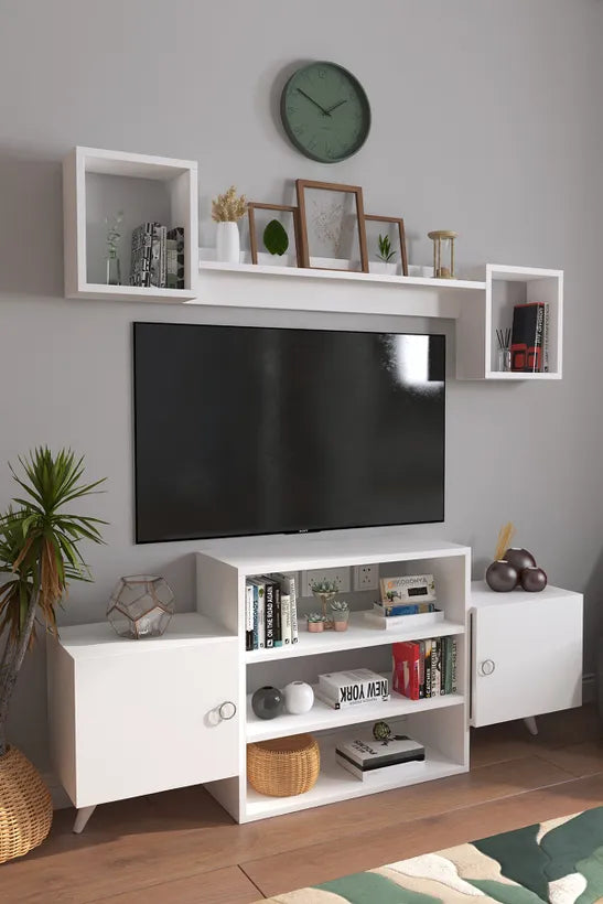 - Dekoronya Prizma Kapaklı Ve Raflı Tv Ünitesi Beyaz