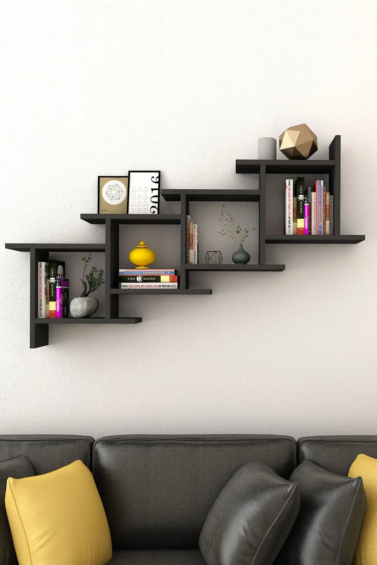 - Dekoronya Yıldız Dekoratif Modern Kitaplık Duvar Rafı Siyah