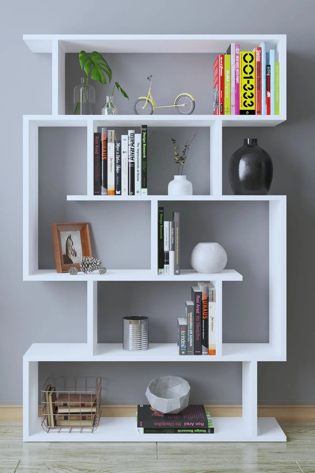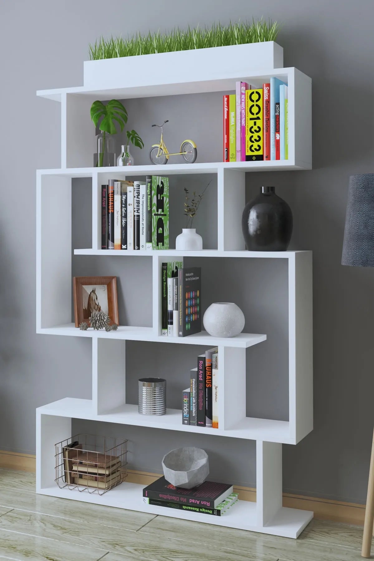 - Dekoronya Yozi Zig Zag Dekoratif Kitaplık Beyaz