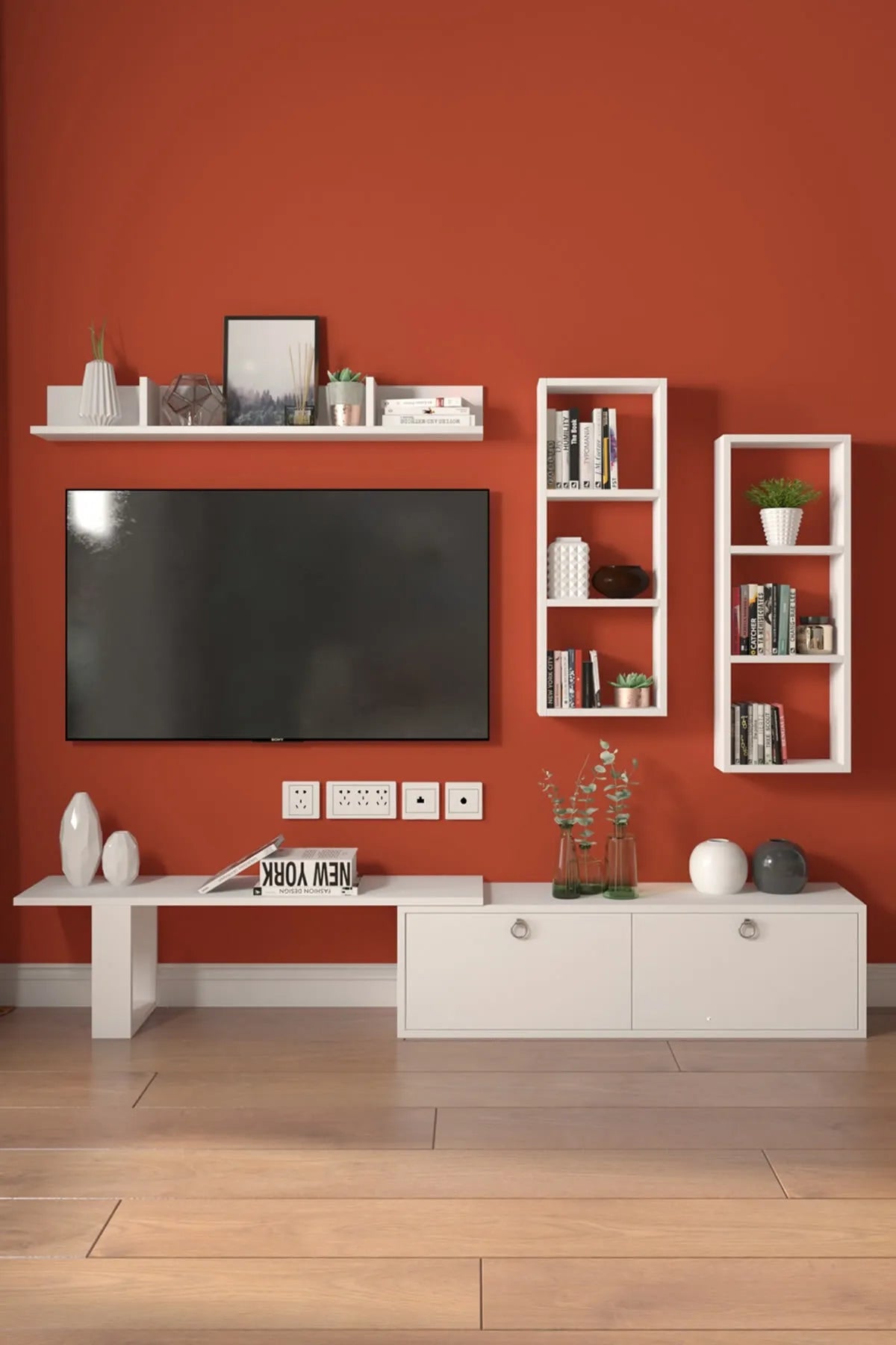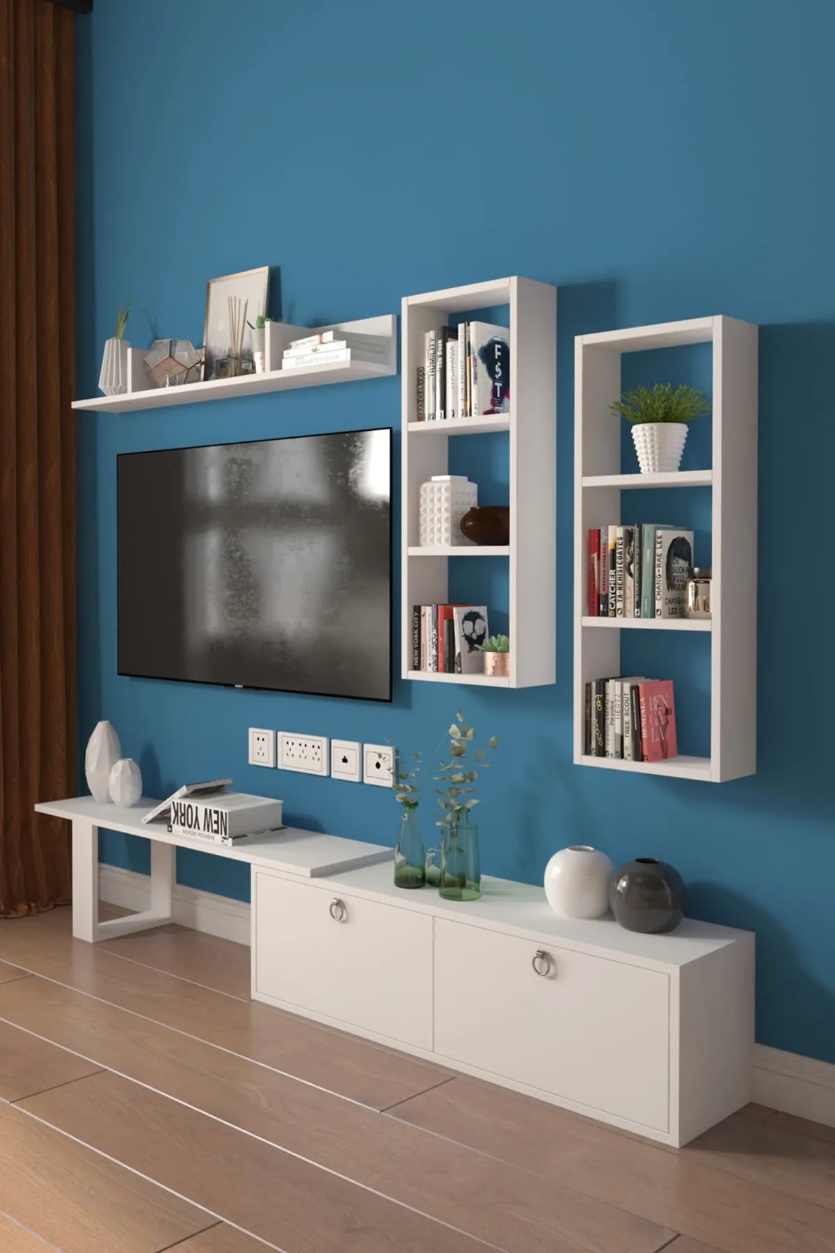 Dekoronya Zera Raf Kitaplıklı Ve Dolap Kapaklı Tv Ünitesi Beyaz
